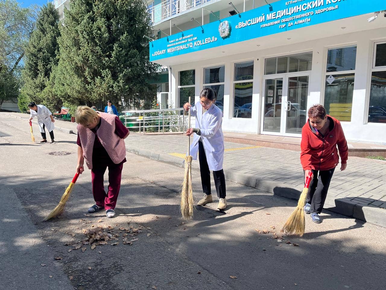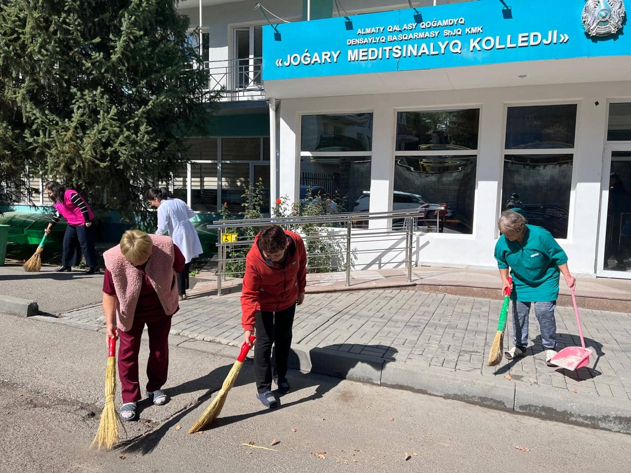 02.10.2025 ж. Алматы қ. ҚДСБ ШЖҚ “Жоғары медициналық колледжі” КМК қызметкерлері жақын маңдағы аумақты жинау бойынша сенбілікке қатысты.